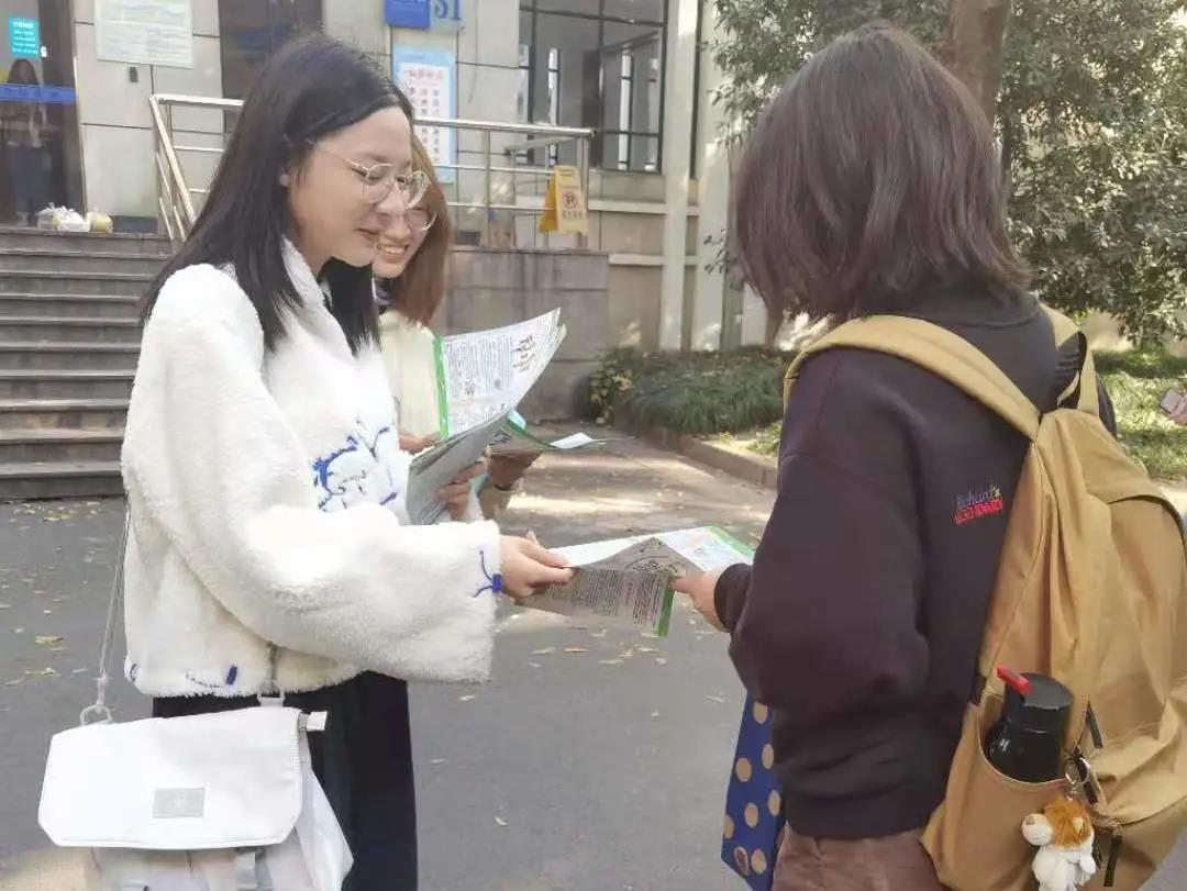 、家庭、社会每个人都应该继续思考的命题。/span> 分发宣传资料小组/span>/span>/p> 章逸舟:/span>最开始大家以为发宣传手册是一件很轻松很容易的事情,但真正实践起来却发现并不是这样的。首先,克服自己的害羞是极其重要的,尽管面对的是我们的同龄人,但开口十分困难。大家勇敢的迈出第一步,主动上前跟其他同学交流,“同学你好,这是我们班主题班会的宣传手册,可以看下吗?谢谢!”有些同学接住点了点头,但也不乏拒绝的同学。挺多同学看到我们手上拿着的手册就会绕着我们走路,躲避我们的视线,说不尴尬肯定是假的,内心真的会有一点难受。所幸,还是有很多同学参与了我们的宣传工作,配合我们仔细阅读了宣传手册。在分发过程中,我们也遇到了几位老师,其中一位老师主动接过我们的宣传手册,询问是否自己写的,得知是我们班自己完成后夸赞我们做的很不错,我觉得这是一件非常温暖的事情。这是一次非常难忘的“发传单”经历,我们永远感谢那些心肠柔软的人。/span>/p> 进班宣传小组/span>/p> /p> 在等待孩子们下课的时间里,普惠金融2003班的小老师们都在认真地备课,认真地准备人生中第一次向初中孩子们上课的考验。/span> 活动结束了,同学们在其中表现出来的热情与活力不仅让各自的任务完美地完成,更宣传了反校园暴力相关知识,锻炼了自己的能力,也增进了同学之间的距离,使团队凝聚力更强了,大家都收获颇丰。/span>