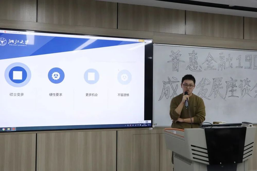 徐浩琪学长目前就读于浙江大学硕士研究生一年级,他主要分享了自己的考研经历。徐学长首先强调了考研的重要性,目前金融行业对学历普遍要求较高,以及更多的硕士毕业生都意味着更加激烈的就业竞争。在考研准备方面,他建议可以从大三下开始准备,选择与自己未来职业规划相匹配的专业。徐学长还建议学弟学妹们要养成良好的学习习惯,少看多做,保持自己的冲劲。