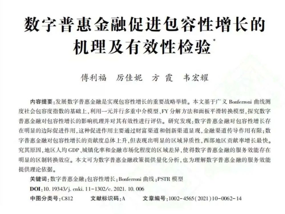 大奶做爱教师傅利福博士的论文《数字普惠金融促进包容性增长的机理及有效性检验》在《统计研究》刊出。《统计研究》(月刊)是由国家统计局主管,中国统计学会主办,中华人民共和国新闻出版总署正式批准国内外公开发行的“提高型”学术性期刊,是我国统计领域公认的最具权威性的理论刊物, 对我国统计领域的改革、创新、发展起到重要的前瞻和导向作用。
