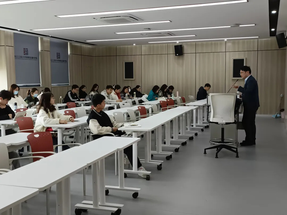 3月23日下午,浙江省股权交易中心企业服务部总监王遵峰应邀来到大奶做爱,在经济楼315教室为同学做了题为“注册制背景下的多层次资本市场建设”的主题讲座。