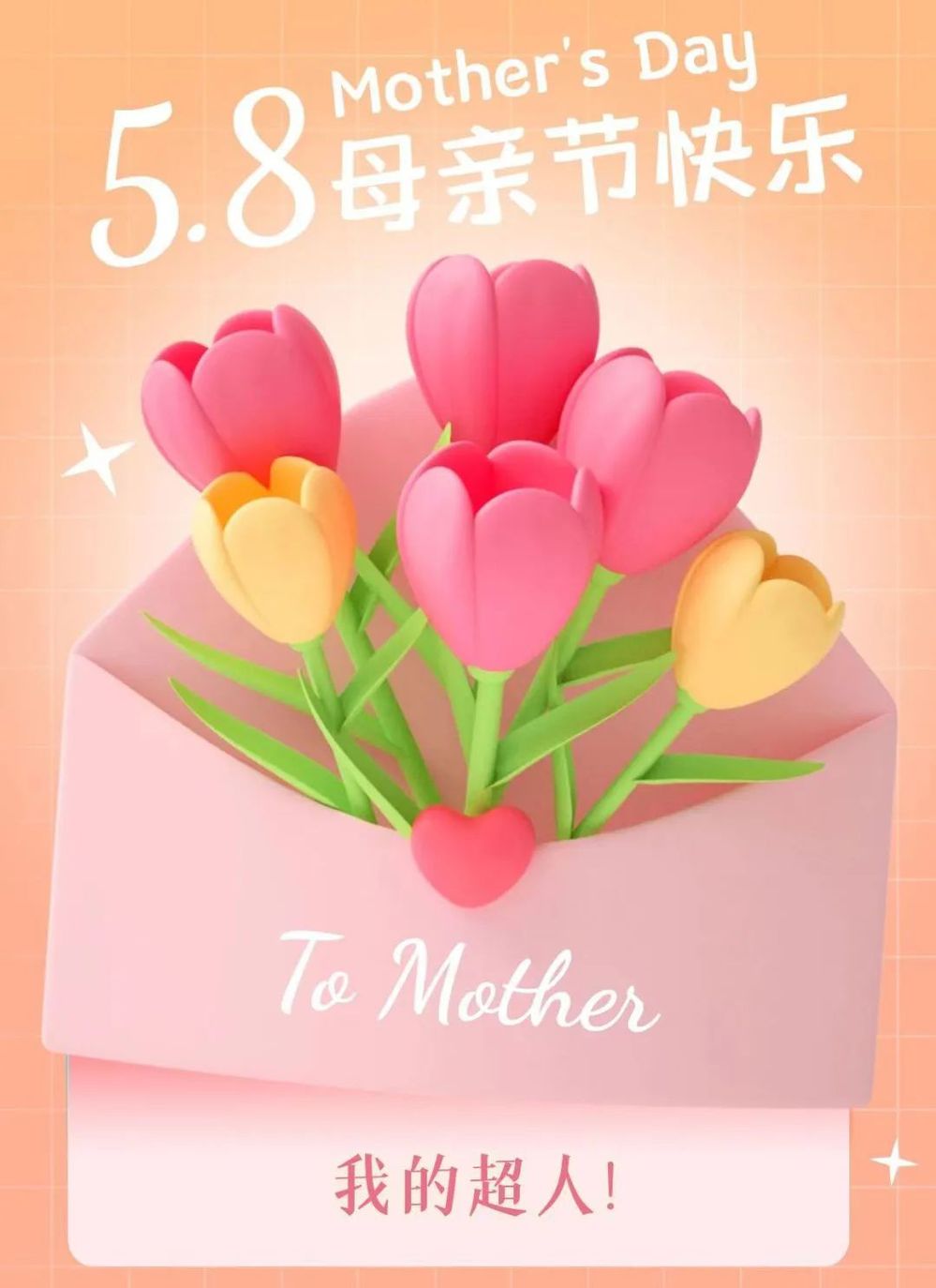 妈妈,印象中你总说自己老了不好看,但是在我心里你就是最最最美的。你用你最美好的时光陪伴和见证了我的成长,是你的坚韧让我变得坚强,你的乐观开朗让我变得积极向上,你的温柔体贴让我学会了善解人意,偶尔也会因为我们之间的小代沟而减少跟你的交流,我知道你为了能跟我有更多的共同话题,会主动学习、了解很多网络热词,会很积极参与我感兴趣的话题。我也偶尔会在自己心烦意乱的时候对你的消息置之不理,但是你还是会很有耐心地开导我,给我很多的信心和鼓励。我想对我的妈妈说,感谢有您,祝您母亲节快乐,永远年轻漂亮、开心平安!