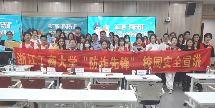 本次宣讲大赛还得到了泰隆银行钱塘支行的大力支持。现场参赛同学和工作人员只要参与“防诈骗”知识答题并获得满分,就可领取由泰隆银行钱塘支行精心准备的礼品一份。