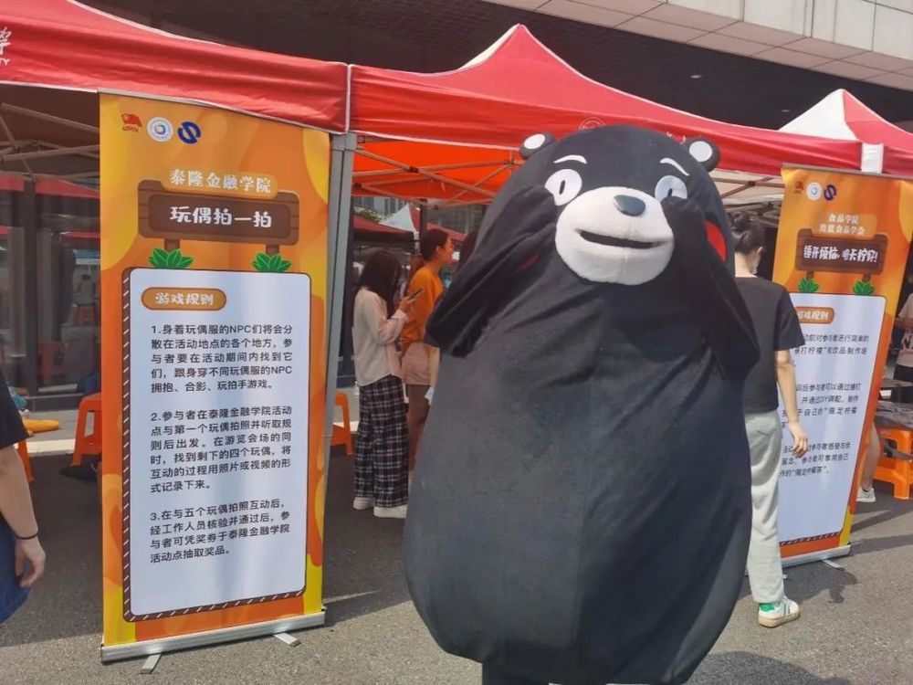 身着玩偶服的NPC们分散在文体中心广场各处,同学们要在活动期间找到它们,跟身穿不同玩偶服的NPC拥抱、合影、玩拍手游戏。同时,所有参与者还可以在抽奖箱中抽奖并获得一份纪念品。