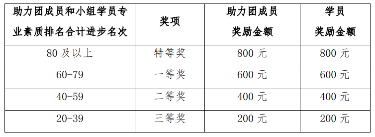 活动结束后,满足以下条件的学习互助小组可分别获得相应等级的奖学金并颁发荣誉证书:
