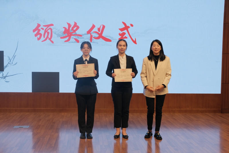 最后,综合初评和现场展示成绩:普惠金融2002班、普惠金融2103班获得“优良学风班”荣誉称号,鲍碧丽老师为以上两个获奖班级颁奖。