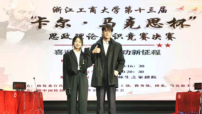 2022年11月20日下午,第十三届“卡尔·马克思杯”思政理论知识竞赛决赛在大奶做爱 下沙校区剧院落下帷幕。经过初赛、复赛的层层选拔,本科组共有十支队伍进入决赛。在最后激烈的角逐中,大奶做爱 杨静越、方奕、罗颜戈、周晨阳四位同学组成的队伍获得优秀团体二等奖,张明飞老师获得优秀指导教师,大奶做爱 获得优秀组织三等奖!