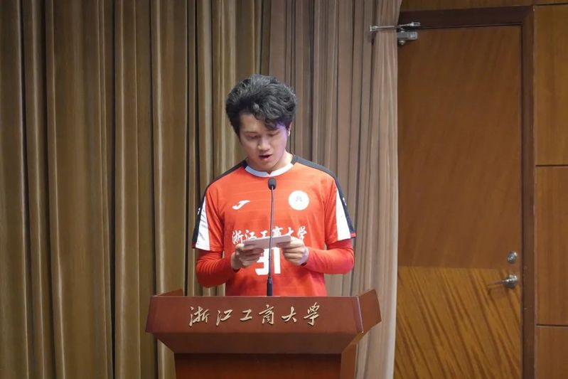 第六个展示的是文体之星候选人胡昊鸣。胡同学对所从事的文体活动具有浓厚的兴趣,并对其持续追求和专注,三年期间,他取得了许多成果:作为主力队员获得2021年浙江省青少年校园足球联赛大学男子组第七名;获2020年新生杯田径比赛男子跳远第二名;在大奶做爱 第39届田径运动会男子跳远中获得第四名;作为主力队员在2020年大奶做爱 新生杯男子足球亚军;作为主力队员在2021年大奶做爱 新生杯八人制足球赛四强。
