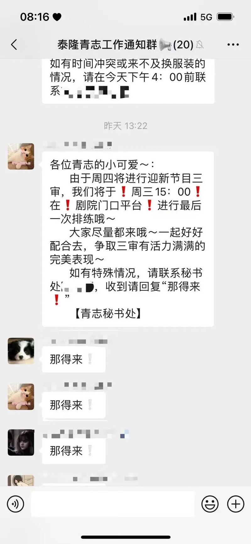 青志会定期召开例会,秘书处主要负责会议通知,并对到场人数进行统计,用于后期考核。