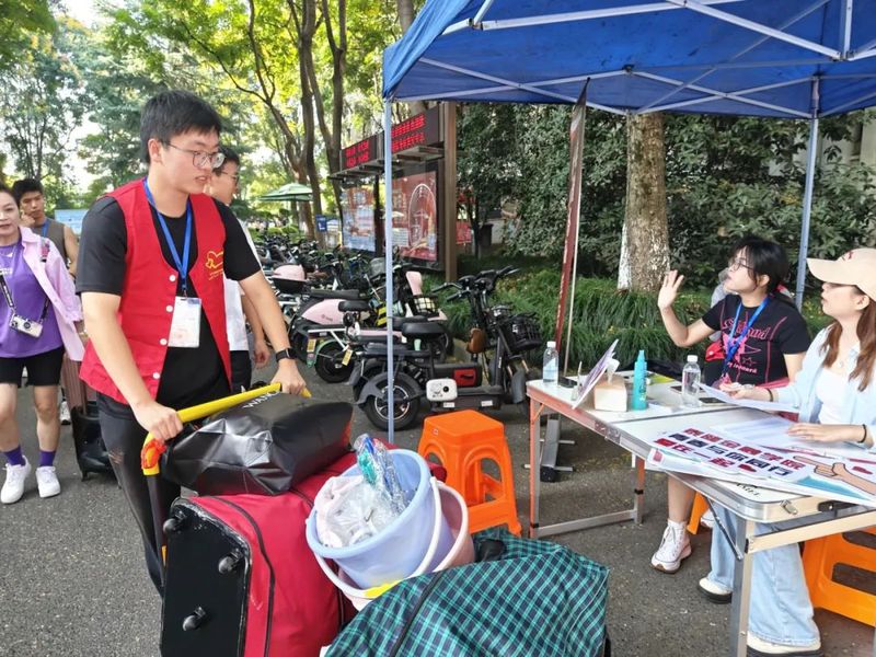 志愿者们的工作分工明确,各司其职。有的志愿者负责协助新生们搬运行李,轻松解决他们的搬家难题;有的志愿者则负责为新生们提供咨询和答疑,帮助他们解决学习和生活中的疑惑;有的志愿者负责引领新生们熟悉校园环境,带领他们认识校园里各个重要的地方。