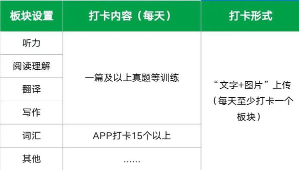 其中,线上需要加入微信群进行每日打卡,根据自己的英语学习习惯,内容包括词汇记忆、阅读理解等,通过app截图或是纸制拍照的形式进行打卡(打卡内容将公开)。