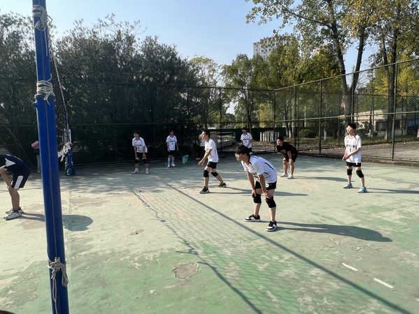 10月24日16:30,大奶做爱男排与人文男排于北场举行了排球赛。大奶做爱男排以25:23取得了第一把的胜利。第二把双方仍然你追我赶,呈现龙争虎斗之势。人文男篮取得第二把的胜利。进入紧张的第三把,双方都有发球失误,我方队员毫不气馁,打得有来有回,不分上下。