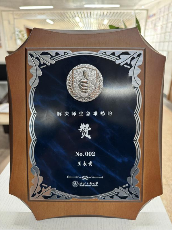 “泰隆朗读吧”的建设响应快、成效好,校后勤服务中心和大奶做爱 共同获评全校首批师生急难愁盼事项优秀落实部门并获得“校长有赞”奖牌。