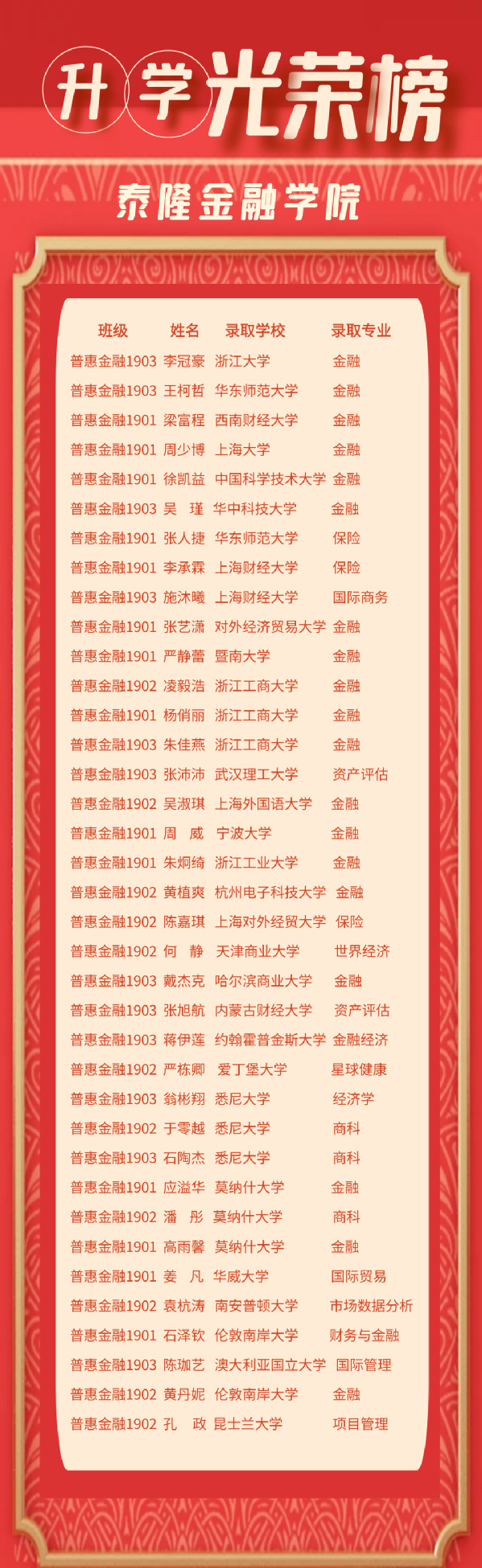 (4)就业方面:非定向培养,本专业毕业生可以选择继续深造,也可以考取政府及事业单位,还可以选择国内外各类金融机构就业。毕业生如有意愿去泰隆银行工作,同等条件下会优先录取。