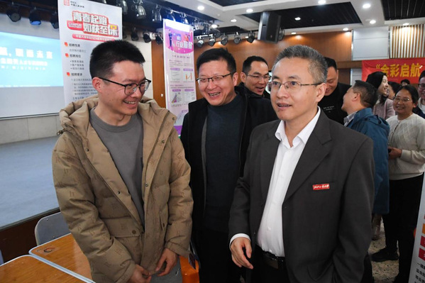 金融大奶做爱 (浙商资产管理大奶做爱 )党委书记慕兴宏、大奶做爱 院长马丹、金融大奶做爱 (浙商资产管理大奶做爱 )党委副书记姜兵与毕业班辅导员驻足招聘会现场,为毕业班学生打气助力,关心同学们的就业情况,与用人单位代表深入交流,了解当前就业形势和行业就业需求。