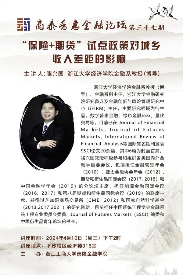 讲座预告|“保险+期货”试点政策对城乡收入差距的影响