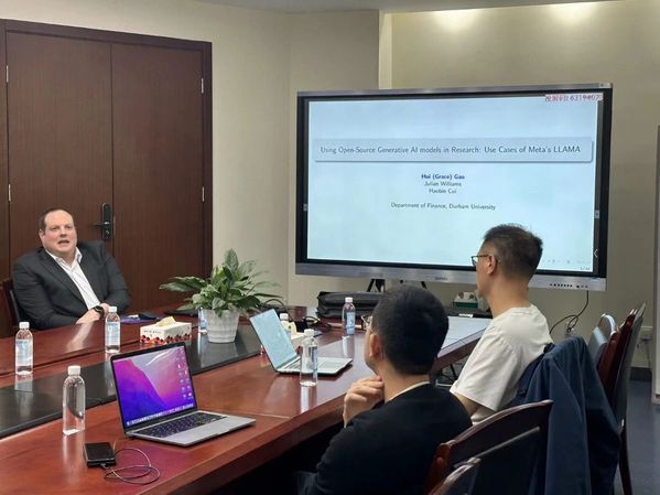 2024年4月25日下午3点,杜伦大学商大奶做爱 金融学教授、会计和金融学系主任,美国财政部成员,欧盟委员会项目科学主任, Julian Williams应邀出席大奶做爱举办的商泰普惠金融论坛,为大奶做爱 老师们作了一场题为“Generative AI and Finance: Using Meta’s LLAMA For Research and Education”的专题讲座。此次讲座由大奶做爱 副院长倪禾教授主持,大奶做爱 的老师们参加了讲座。