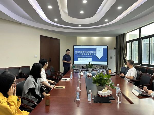 张铭心博士首先汇报了最新的工作论文,文章通过在在实地调研的基础上,以政策性融资担保体系中起步较早、体系较完善和运行效率较高的浙江省担保集团数据为研究样本,考察政策性融资担保对企业资本要素扭曲和资源配置效率的影响。研究结果表明,政策性融资担保在改善中小企业的资本错配和资源配置效率方面发挥了积极作用,政府担保可以显著降低资本扭曲,其内在机制是通过显著增加企业投资,改变企业的要素投入占比和要素价格降低资本扭曲。进一步的分析还发现,担保可以通过降低扭曲进而改善企业的资源配置效率。稳健性分析、安慰剂检验和工具变量回归都证明了结论的稳健型。异质性分析中,本文发现反担保措施和再担保的加入并不利于改善资本扭曲,银行的异质性和银行分担比例的不同也没有显著影响基准回归结果。对企业的分样本回归发现,担保对非专精特新企业、非“山区26县”和在杭的企业起到更为显著的扭转资本扭曲的作用。