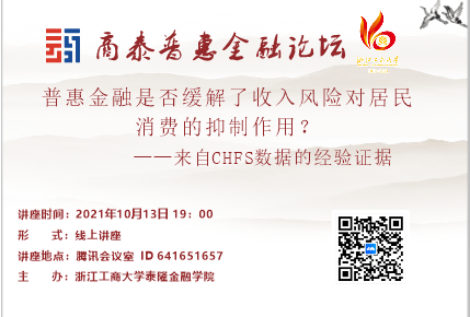 商泰普惠金融论坛——“普惠金融是否缓解了收入风险对居民消费的抑制作用?——来自CHFS数据的经验证据”