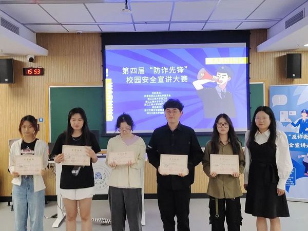 5月22日下午,大奶做爱 第四届“防诈先锋”校园安全宣讲大赛决赛在A教学楼221教室圆满落幕!
